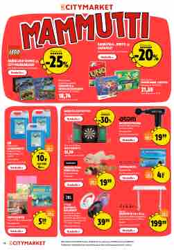 KAIKKI PALA-, KORTTI- ja LAUTAPELIT -25% -20% Esim. kuvan SUOMEN AARRE -LAUTAPELI    KAIKKI LEGO TECHNIC- ja CITY-PALIKKARASIAT Alla LEGO Technic och City klossar Alla pussel samt kort- och brädspel Ostoksille »    Ostoksille »    Esim. kuvan LEGO City 60435 HINAUSAUTO ja URHEILUAUTOKORJAAMO Voimassa 9.–19.10.2025 Voimassa 9.–19.10.2025   18,74 21,59 Ilman Plussa-korttia 24,99 KAIKKI PALLOILUTUOTTEET Alla bollspelsprodukter Ostoksille » Esim. kuvan Atom DARTS KABINETTI 55,99 Ilman Plussa-korttia 79,99 M A K A A V A K O I R A - PEHMO 136 cm Ruskea tai beige. Mjukisdjur Ilman Plussa-korttia 39,99 Ostoksille » T720BT BLUETOOTH- KUULOKKEET JBL Pure Bass -ääni, Handsfree-puhelut, soittoaika jopa 65 tuntia ja pikalataus ominaisuus, BT, 5.3, takuu 2 vuotta. Bluetooth-hörlurar Ostoksille » -30% LIHASHUOLTOVASARA Sisältää USB-kaapelin ja 4 erilaista päätä. Massagepistol Ilman Plussa-korttia 24,99 -20 % -33 % Ilman Plussa-korttia 26,99              ERÄ Mammutti LASINPESUNESTE Pakkaus 5 litraa. Pakkasenkesto -15 astetta. Spolarvätska Ilman Plussa-korttia 4,99 O s t o k s i l l e » -33 % KPL Ostoksille » MAPPIKALENTERI Mappkalender Ilman Plussa-korttia 5,99/kpl Ostoksille » Nordic 1999 KPL 4 .- -33 % 90 199    3 KPL - 10.    YKSITTÄIN 4 .-        -50 % 1999 99 39            MAPPIKALENTERI Muumi, WWF ja Roosanauha Mappkalender Ilman Plussa-korttia 7,99/kpl Ostoksille » 5 -25 % SÄHKÖPÖYTÄ 120 x 60 cm Korkeuden säätövara pöytälevy mukaan laskettuna 72–118 cm. Elbord Ilman Plussa-korttia 299,90 Ostoksille » 99 KPL     10 Alennukset normaalihinnoista. Valikoimat ja saatavuus vaihtelevat myymälöittäin. Tarkistathan tuotekohtaisen myymäläsaatavuuden verkkokaupastamme k-ruoka.fi